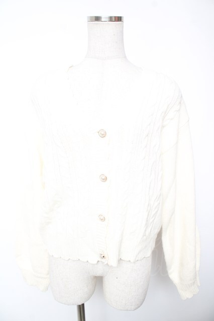 axes femme / パールボタンニットカーディガン F 白 Y-26-01-12-036-AX-TO-SZ-ZY
