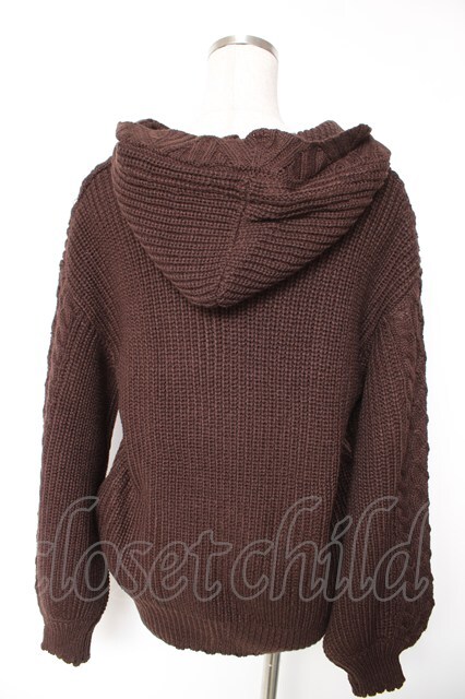 axes femme / ケーブル編ニットパーカー M Dブラウン Y-26-01-12-046-AX-TO-SZ-ZY