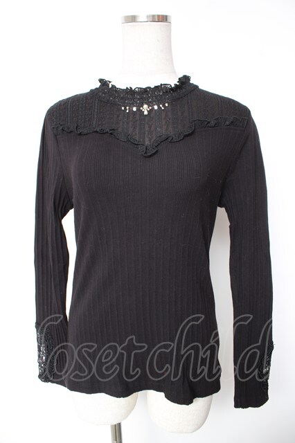 axes femme / 袖モチーフレースプルオーバー M 黒 Y-26-01-12-054-AX-TO-SZ-ZY