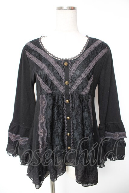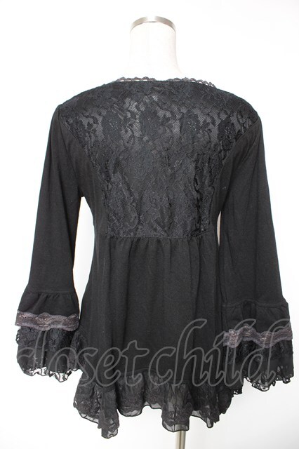 axes femme / 姫袖風レース切り替えチュニック 黒 Y-26-01-12-059-AX-TO-SZ-ZY