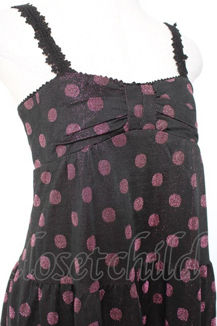 Emily Temple cute / ラメ水玉ジャガードノースリーブワンピース 黒×ピンク Y-26-01-12-108-ET-OP-SZ-ZY