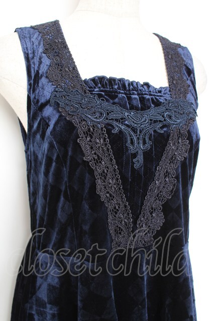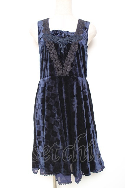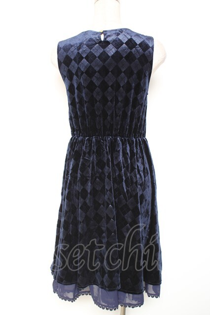 axes femme / アーガイルエンボスベロアワンピース 紺 Y-26-01-12-116-AX-OP-SZ-ZY
