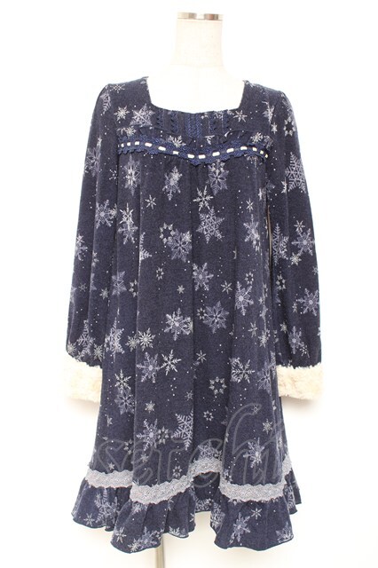 axes femme / 結晶柄ニットワンピース 紺 Y-26-01-12-120-AX-OP-SZ-ZY