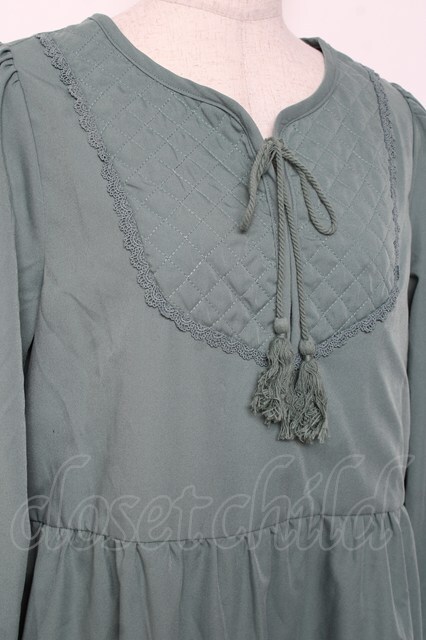 axes femme / キルティングブロッキングワンピース グリーン Y-26-01-12-125-AX-OP-SZ-ZY