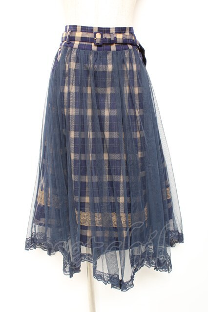 axes femme / チュール重ねチェックスカート 紺 Y-26-01-12-137-AX-SK-SZ-ZY [2100070000046343-Y-26-01-12-137-AX-SK-SZ-ZY]