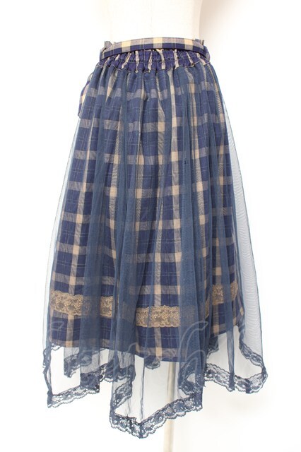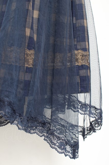 axes femme / チュール重ねチェックスカート 紺 Y-26-01-12-137-AX-SK-SZ-ZY
