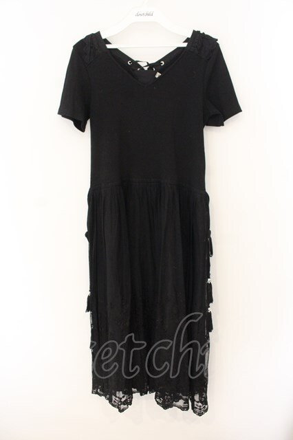 axes femme / 裾チュール刺繍ワンピース M クロ O-26-01-12-022-AX-OP-IG-OS
