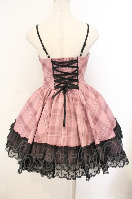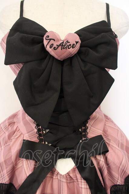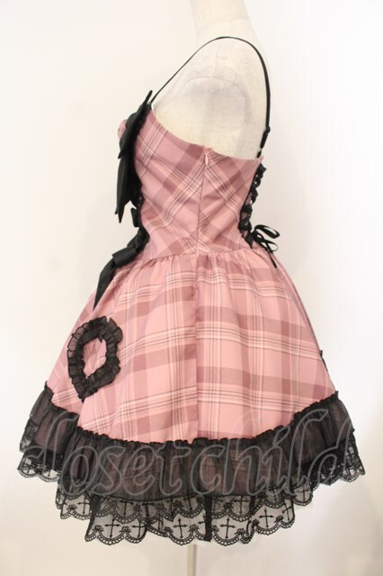 Black Shamrock / チェック×ハートビッグリボンジャンパースカート M ピンク×クロ O-26-01-12-052-0-OP-OW-OS [2100080000071372-O-26-01-12-052-0-OP-OW-OS]