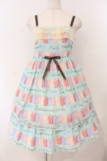 Emily Temple cute / マカロンプリントノースリーブワンピース サックス O-26-01-12-050-ET-OP-IG-OS