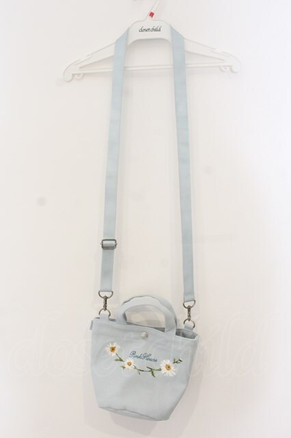 PINK HOUSE / マーガレットブーケ刺繍ミニトートポシェット サックス O-26-01-12-001-LO-BG-IG-OS