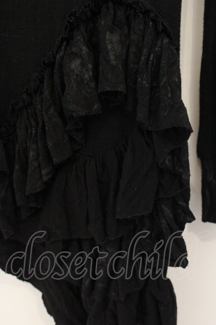 h.naoto Blood / 裾フリルカットソー ブラック O-26-01-12-085-HN-TO-OW-OS