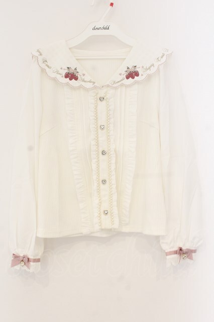 LIZ LISA / ストロベリー刺繍セーラーリブトップス シロ O-26-01-12-068-LO-BL-OW-OS