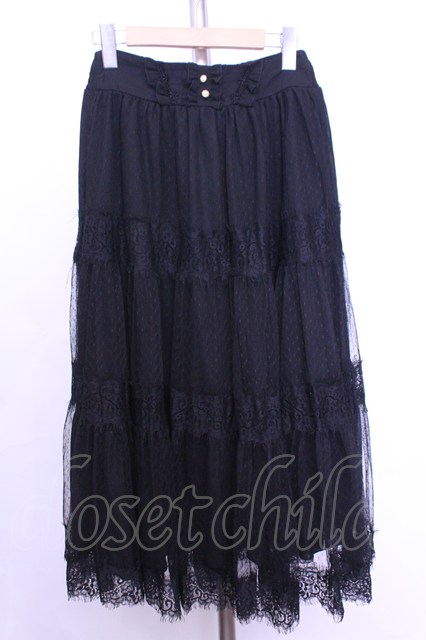 axes femme / ドットチュールロングスカート クロ O-26-01-12-1050-AX-SK-IG-OS