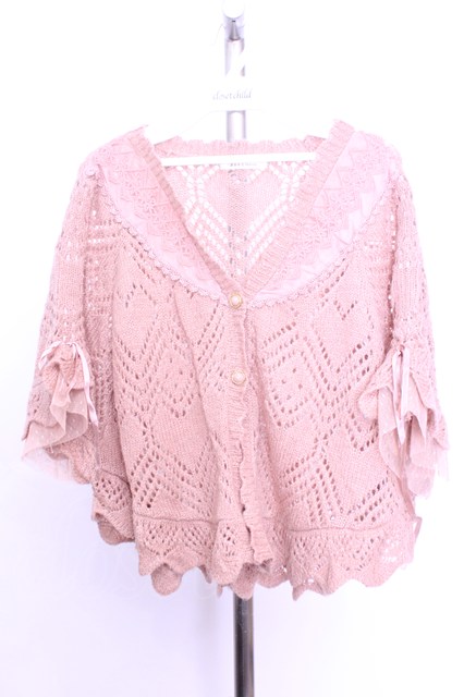 axes femme / ハート透かし編みポンチョ ピンクベージュ O-26-01-12-1046-AX-TO-IG-OS