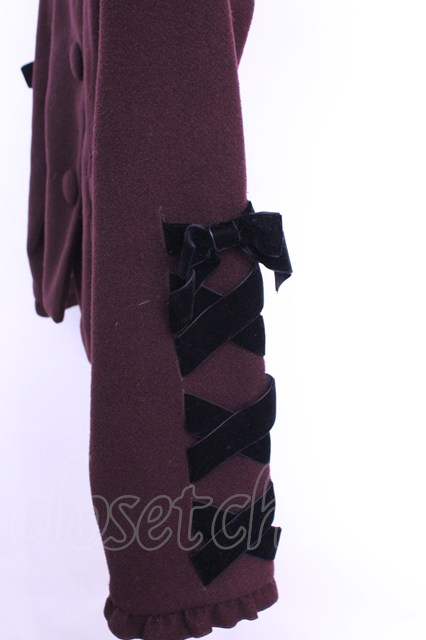 axes femme kawaii / ブラックリボンショートコート ワイン×クロ O-26-01-12-1030-AX-CO-IG-OS [2100080000071425-O-26-01-12-1030-AX-CO-IG-OS]