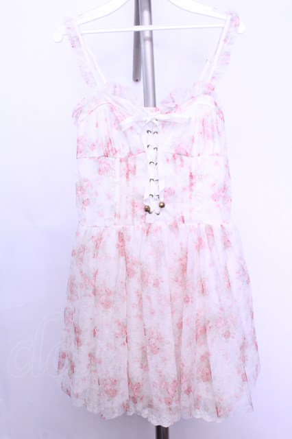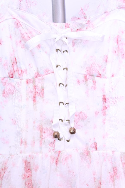 LIZ LISA / チュール花柄ビスチェ風ワンピース 0 シロxピンク O-26-01-12-1015-LO-OP-YM-OS