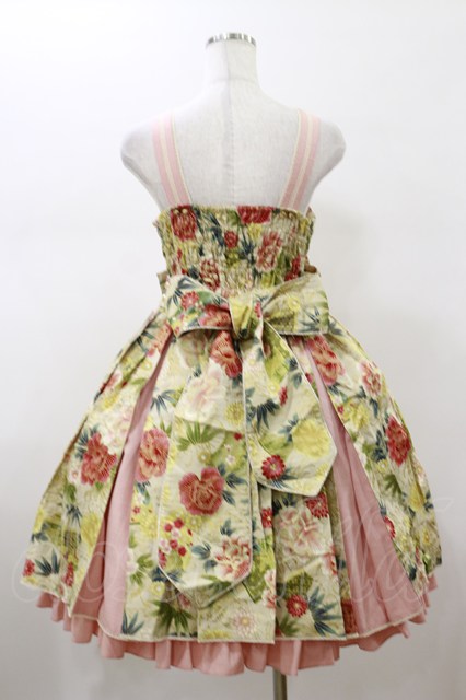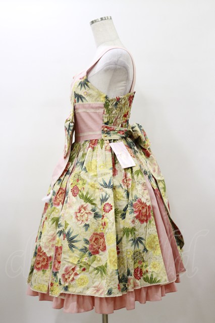 metamorphose / 花と扇の和柄タックジャンパースカート サイズ1 アイボリー/ピンク H-26-01-17-085-ME-OP-NS-ZH [2100030000083526-H-26-01-17-085-ME-OP-NS-ZH]