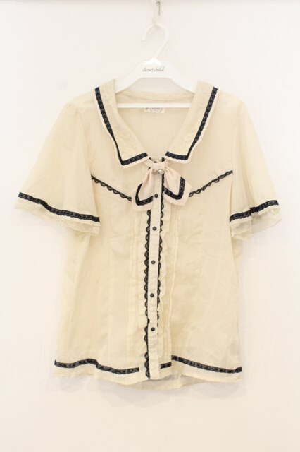 axes femme / タイ付きバイカラーレースブラウス アイボリー O-26-01-13-044-AX-TO-IG-OS