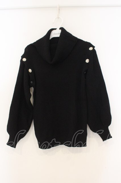 An MILLE / ショルダービジューボタンニット クロ O-26-01-13-019-EL-TO-OW-OS