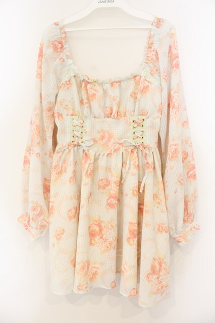 LIZ LISA / オフショルローズ柄ワンピース サックス O-26-01-13-031-LO-OP-IG-OS