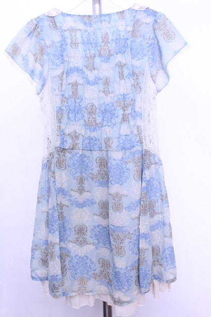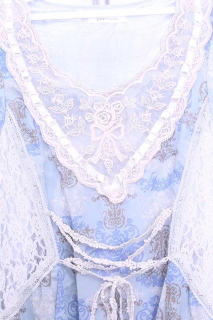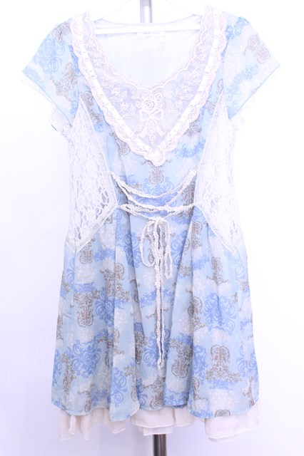 axes femme / レースシフォン切替半袖ワンピース サックス O-26-01-12-2020-AX-OP-IG-OS [2100080000070818-O-26-01-12-2020-AX-OP-IG-OS]
