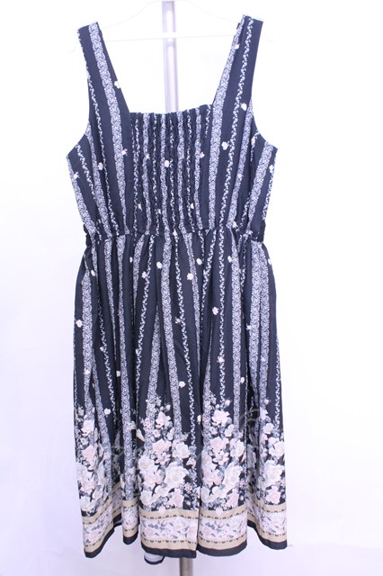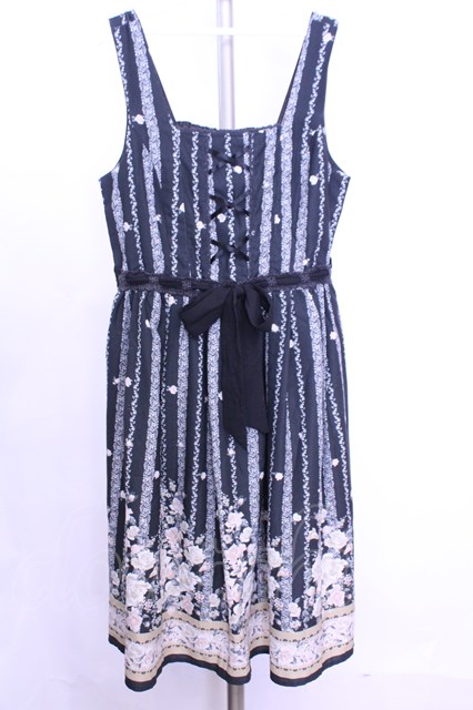 axes femme / バラパネル柄ワンピース M クロ O-26-01-12-2037-AX-OP-IG-OS