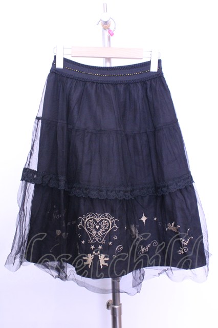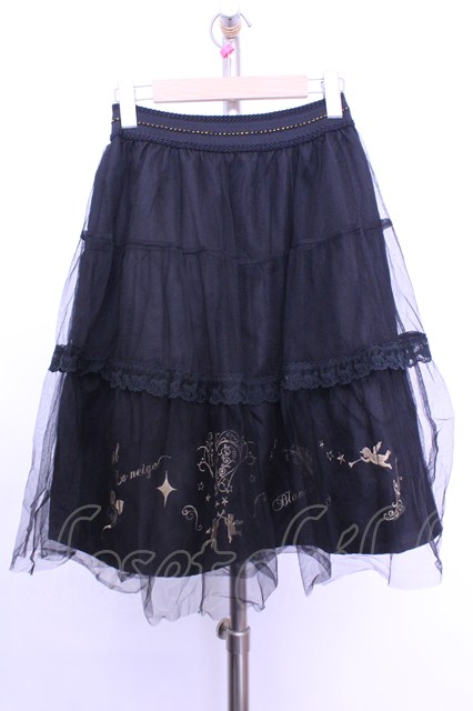 axes femme / 刺繍チュールスカート M クロ O-26-01-12-2023-AX-SK-IG-OS