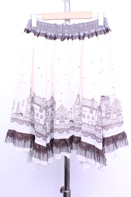 axes femme / 繊細街柄スカート M アイボリー×ブラウン O-26-01-12-2021-AX-SK-IG-OS