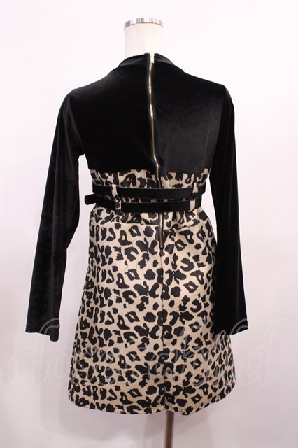 Bubbles / レオパード柄ワンピース Free ブラック/ベージュ H-26-01-17-1013-CA-OP-NS-ZH