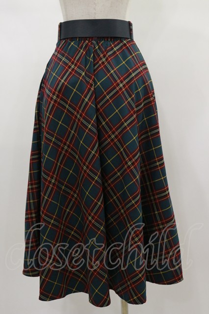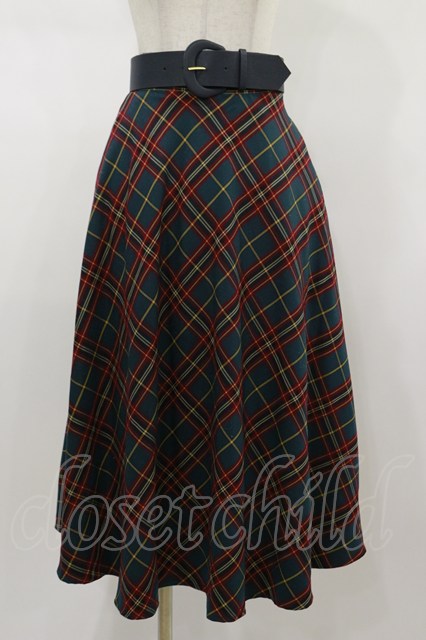 an another angelus / 太ベルト付きチェックフレアースカート Free GREEN H-26-01-18-049-CA-SK-NS-ZH