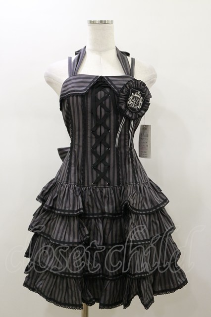 Angelic Pretty / ヴィンテージストライプジャンパースカート Free グレー H-26-01-18-078-AP-OP-NS-ZH