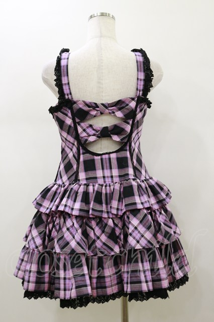 Angelic Pretty / マカロンタータンローウエストジャンパースカート Free ブラック H-26-01-18-082-AP-OP-NS-ZH
