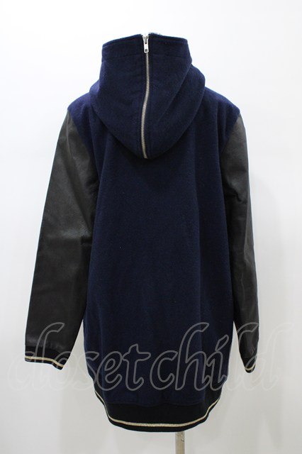 elements,H / レザー切替フードブルゾン HOMME ネイビー H-26-01-18-1061-PU-JA-KB-ZH
