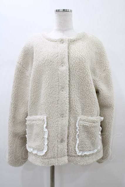 merry jenny / ノーカラーボアジャケット アイボリー H-26-01-18-1055-LO-JA-KB-ZH