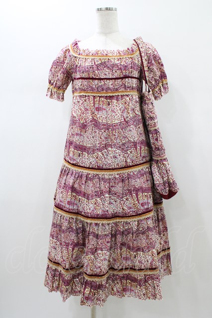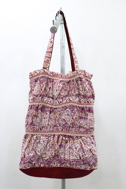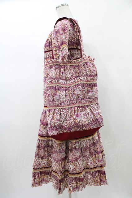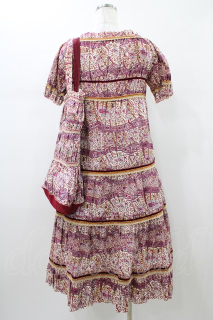 Jane Marple Dans Le Salon / 総柄リバティティアードワンピース+トートバッグ M ボルドー H-26-01-18-1035-JM-OP-KB-ZH [2100000002210402-H-26-01-18-1035-JM-OP-KB-ZH]