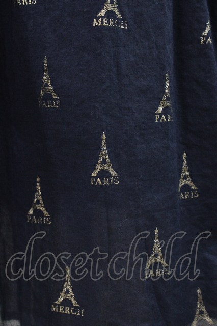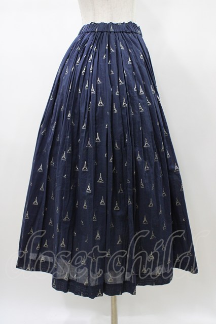 Jane Marple Dans Le Salon / LA TOUR EIFFELタックスカート ネイビー×ホワイトゴールド H-26-01-18-1031-JM-SK-KB-ZH