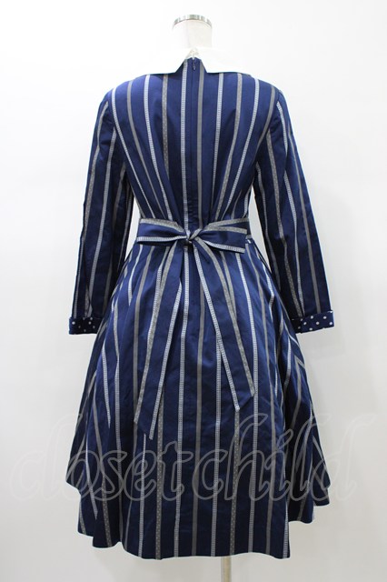 Jane Marple / Ribbon stripe jacquardのパブリックドレス ネイビー H-26-01-18-1018-JM-OP-KB-ZH