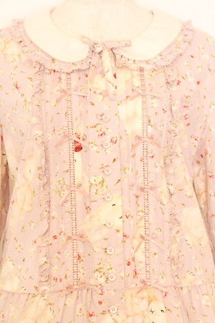 PINK HOUSE / バラ園うさぎミディワンピース ピンク O-26-01-14-004-LO-OP-IG-OS