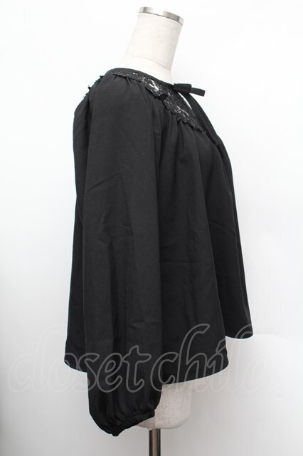 Fi.n.t / フラワーレース切り替えリボンブラウス 黒 S-26-01-13-013-CA-BL-HR-ZS