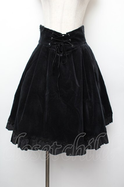 Moi-meme-Moitie / 別珍後ろ編み上げスカート(2001) 黒 S-26-01-13-055-MO-SK-AS-ZS [2100020000036396-S-26-01-13-055-MO-SK-AS-ZS]