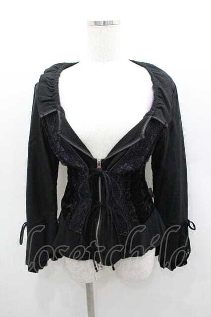 Ozz On / レース切り替えダブルZIPカーディガン 黒X紫 I-26-01-13-023-OO-TO-SA-ZI [2100060000048814-I-26-01-13-023-OO-TO-SA-ZI]