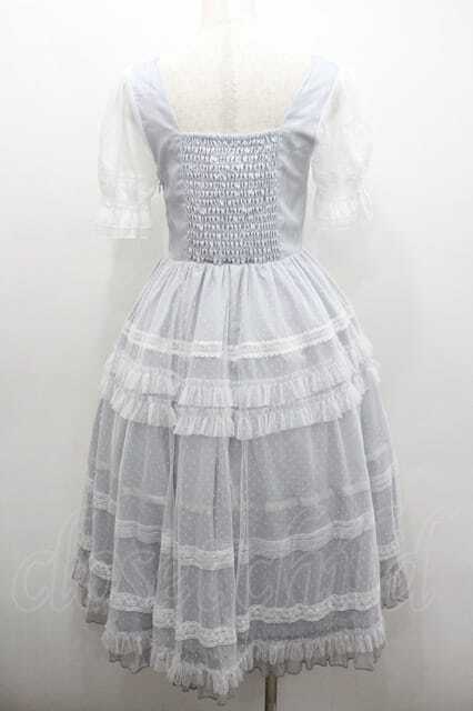 来信与詩 / 縦薔薇刺繍ドットチュール重ね半袖ワンピース M サックスX白 I-26-01-13-035-0-OP-SA-ZI [2100060000044648-I-26-01-13-035-0-OP-SA-ZI]