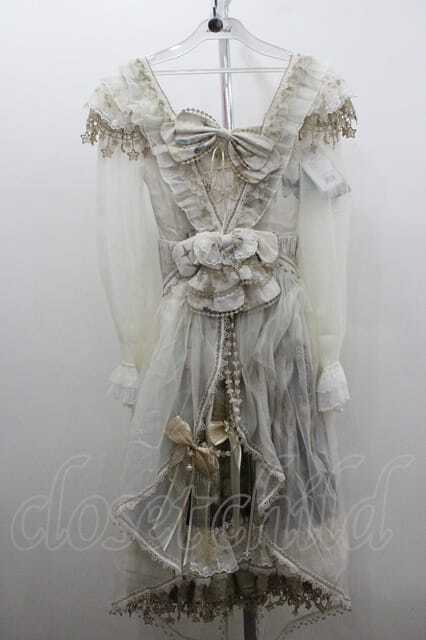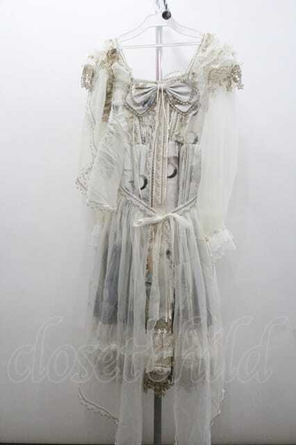 Bramblerose / ウィンドウ柄カーテン風チュール重ねワンピース S アイボリー I-26-01-13-046-0-OP-SA-ZI