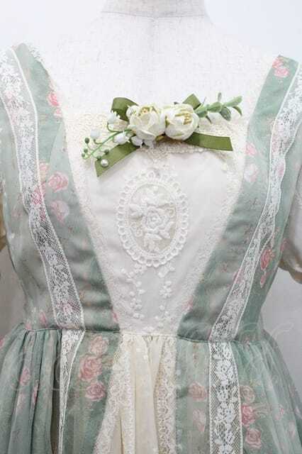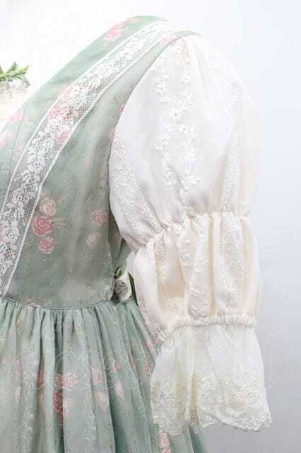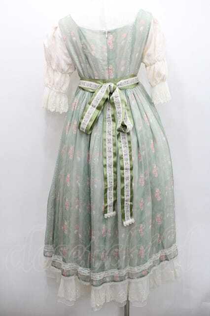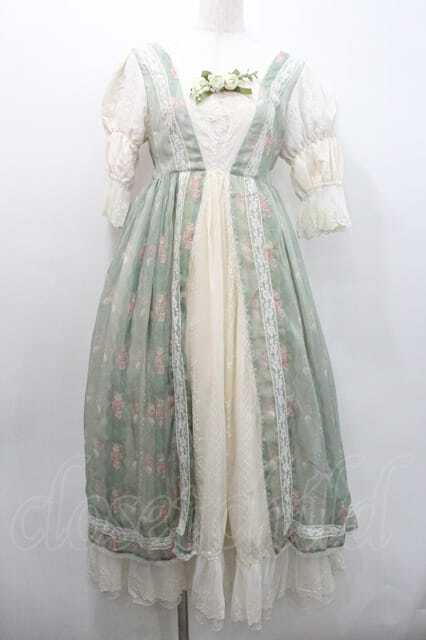 Miss Point / 薔薇プリントチュール重ね半袖ワンピース S グリーンXアイボリー I-26-01-13-056-0-OP-SA-ZI