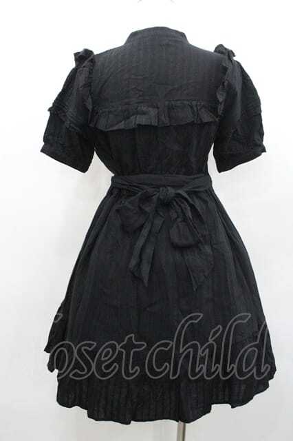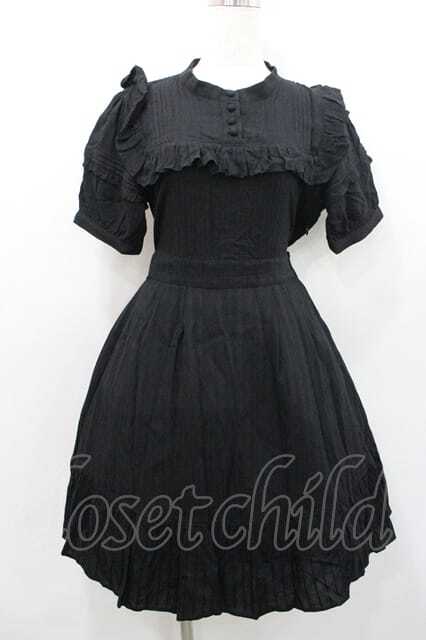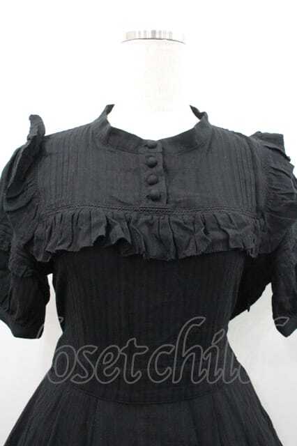 axes femme POETIQUE / フロントピンタック&フリル半袖ワンピース 黒 I-26-01-13-072-AX-OP-SA-ZI