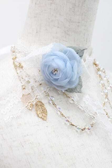 棘 瑰 / ローズリボンチェーンチョーカー 白x青 I-26-01-13-103-0-AC-SA-ZI