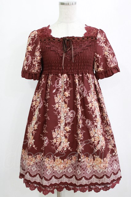 axes femme / ローズレースプリントチュニック ワイン H-26-01-19-021-AX-TO-KB-ZH
