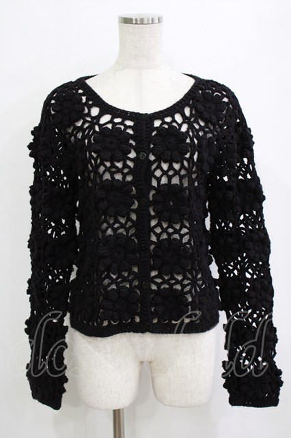 merry jenny / flowerクロシェカーディガン ブラック H-26-01-19-055-LO-TO-KB-ZH