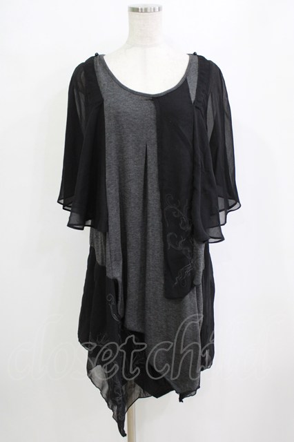 Ozz Croce / レイヤードノースリーブワンピース グレー×黒 H-26-01-19-036-OO-OP-KB-ZH [2100030000083248-H-26-01-19-036-OO-OP-KB-ZH]
