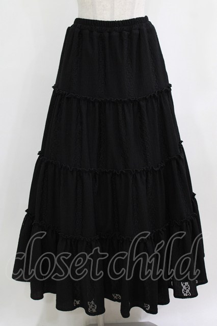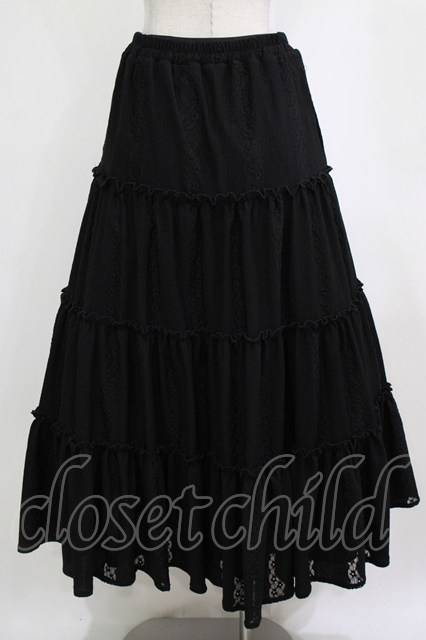 merry jenny / スカラップカットレースティアードスカート ブラック H-26-01-19-011-LO-SK-KB-ZH